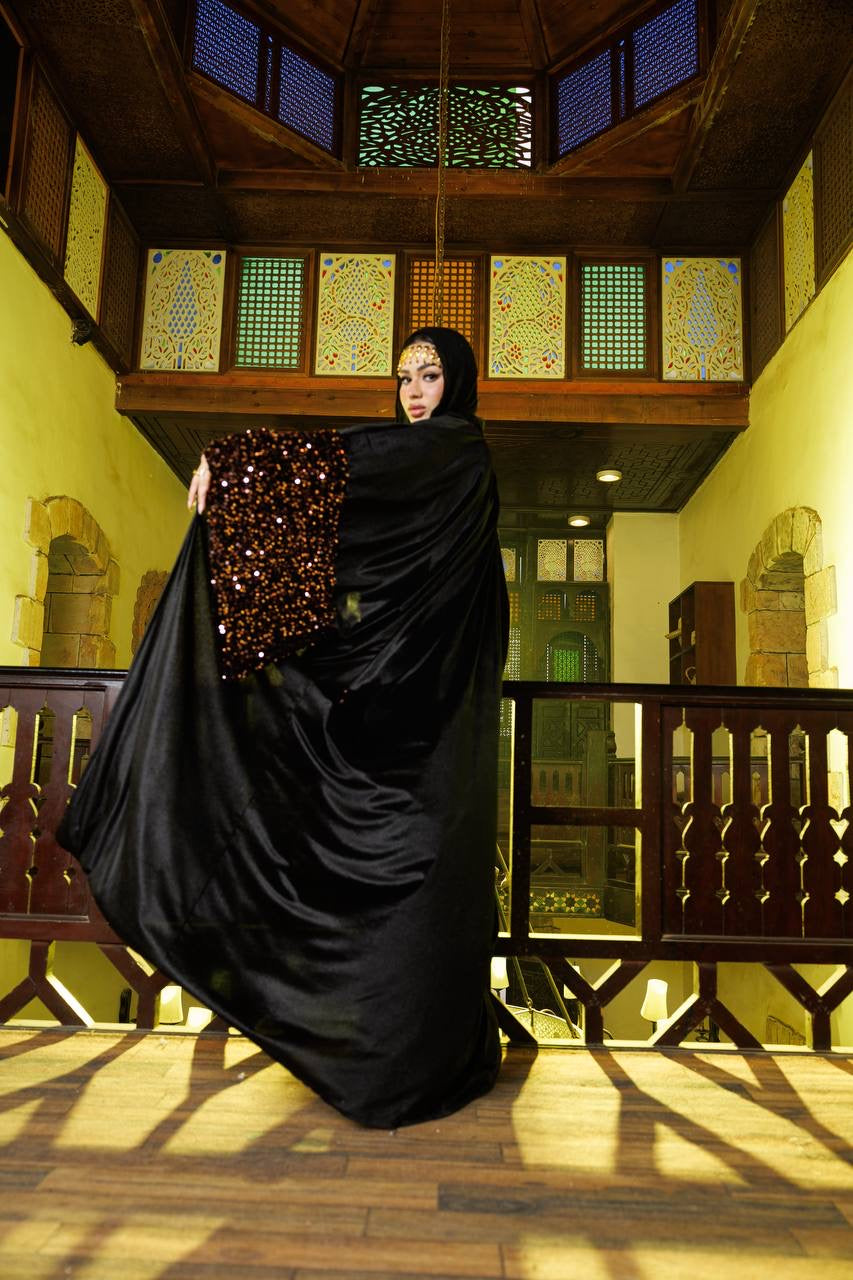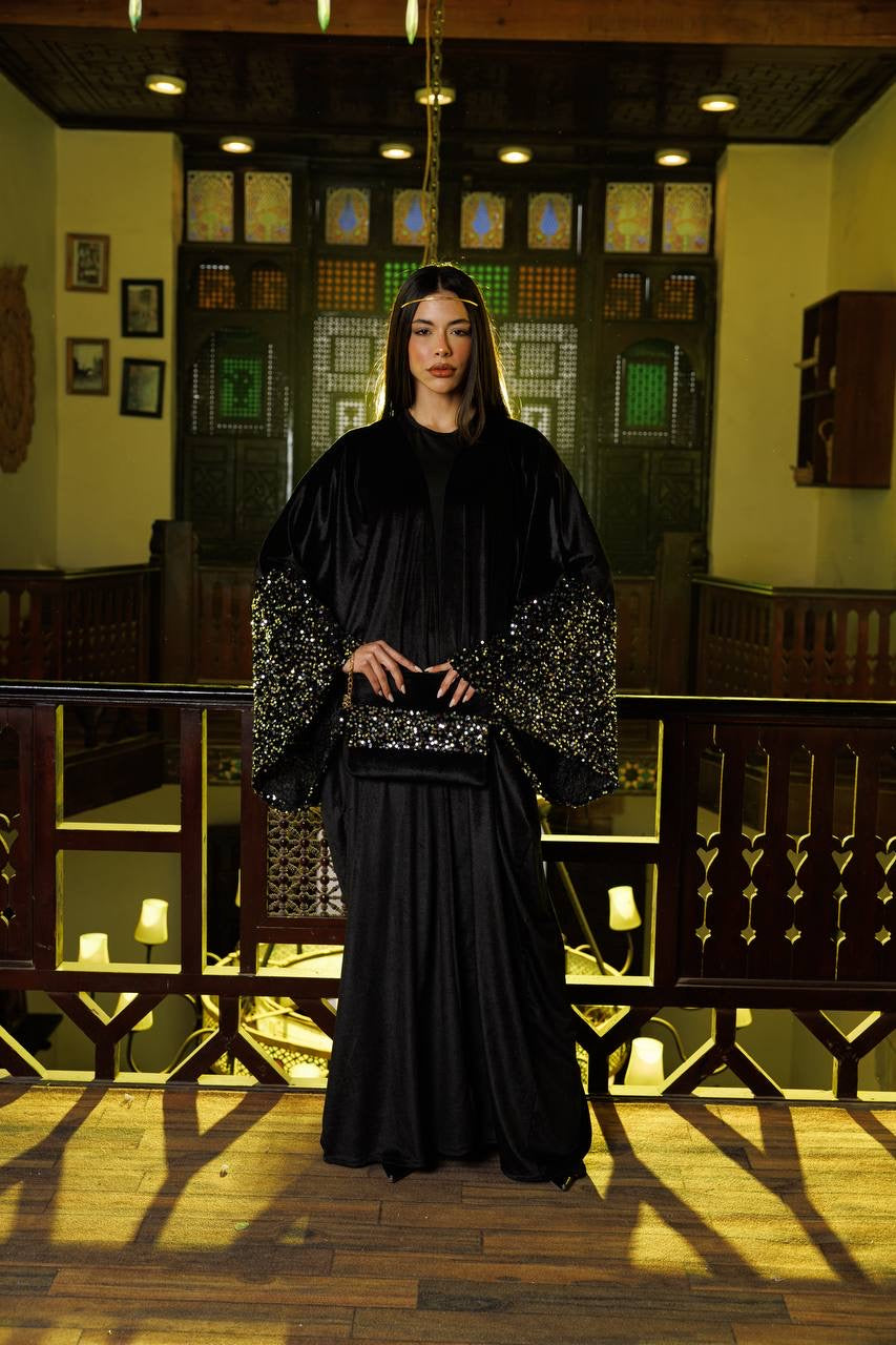 With sequin sleeves & matching bag👛