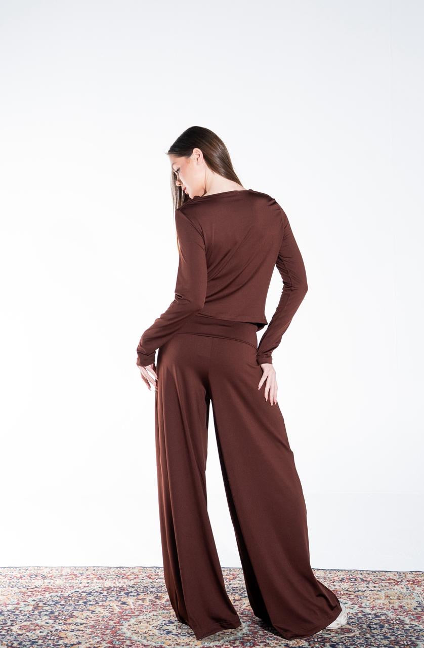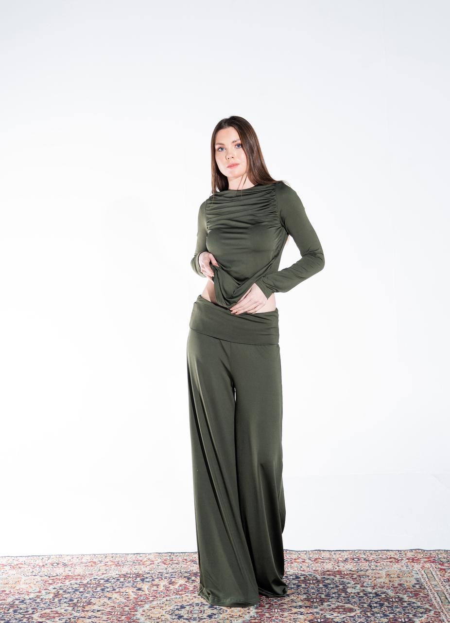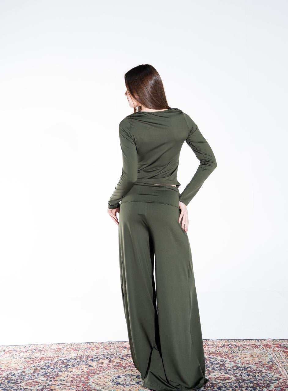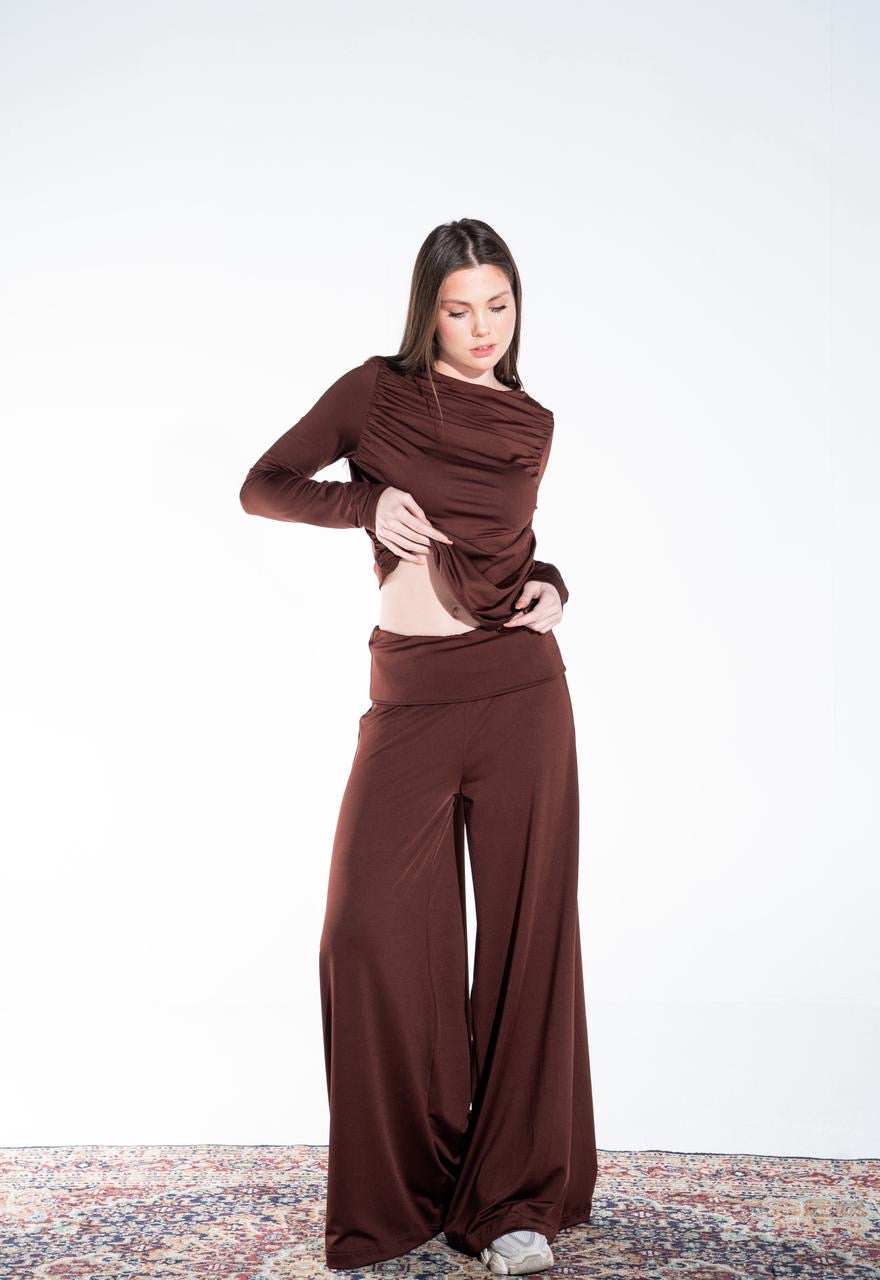 👖 Pants: Wide-leg flowy pants with fold-over waistband