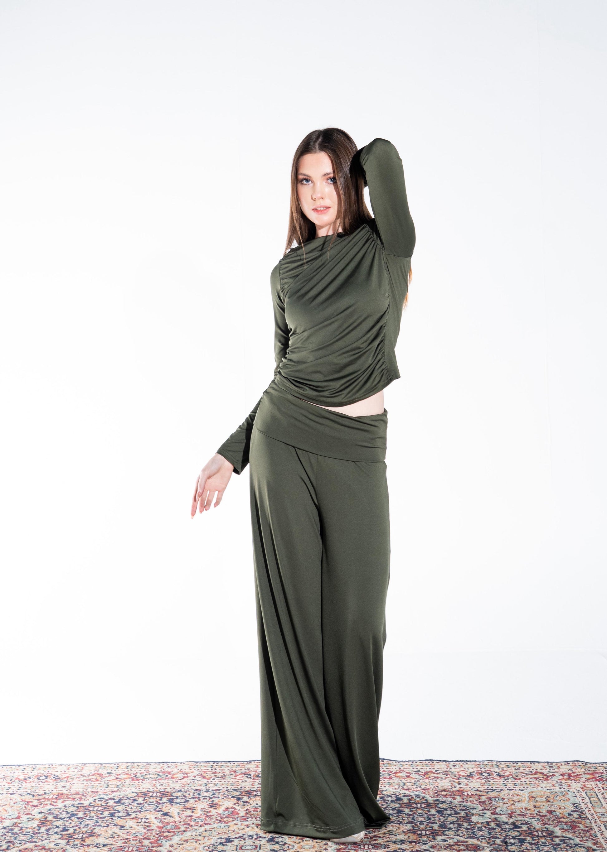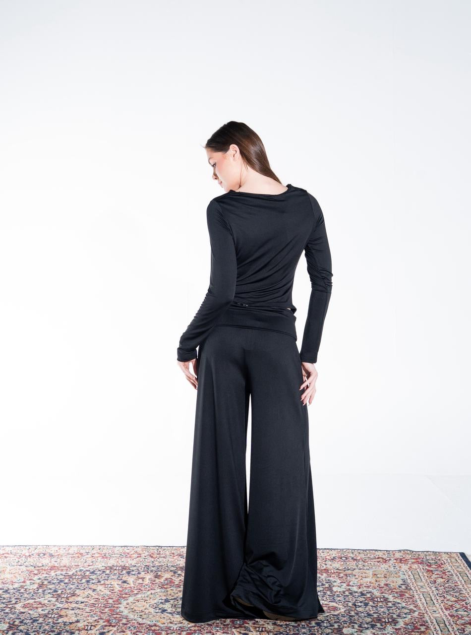 The FlowFlex Yoga Set combines a beautifully draped long-sleeve top with flowy wide-leg pants, creating a look that feels as good as it looks. Made from soft stretch polyamide fabric, this set moves with your body while offering a flattering and relaxed silhouette.