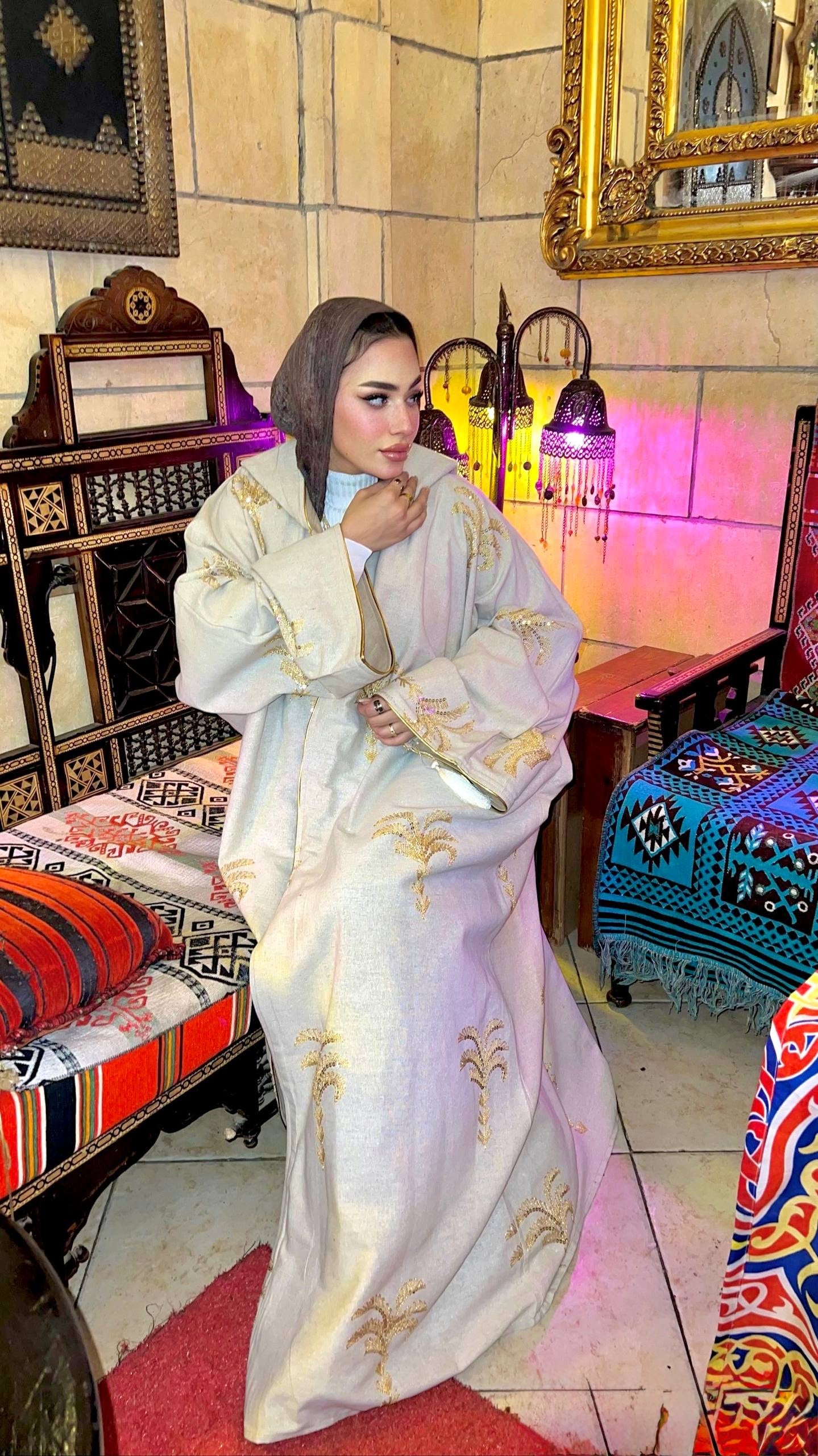 Made for women who love to stand out. The Royal Desert Kaftan blends authentic Moroccan elegance with modern luxury. Crafted from premium imported linen, fully lined with soft suede, and finished with refined embroidery for a rich, statement look. Effortless, unique, unforgettable.