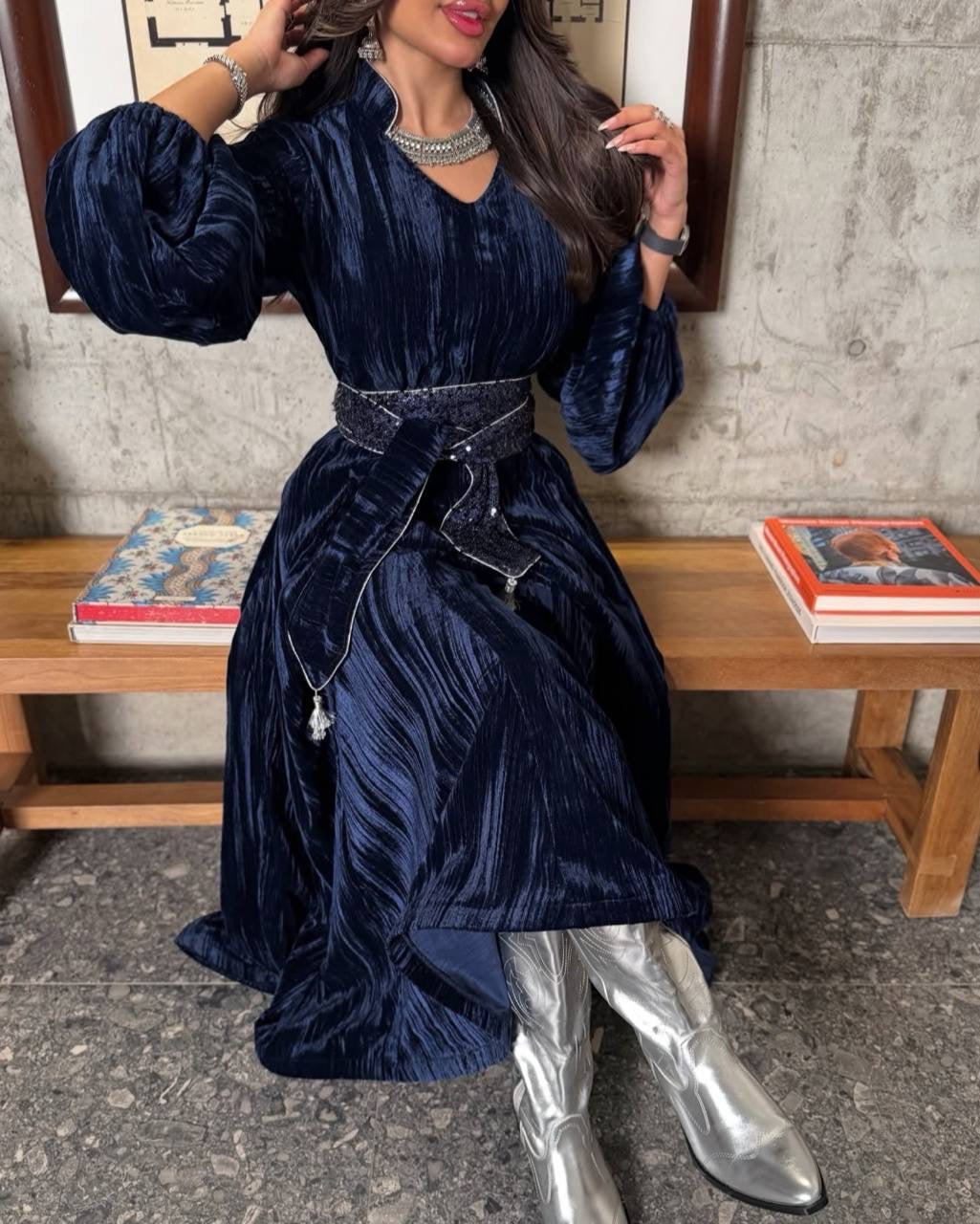 Soft, elegant, and effortlessly luxurious. This velvet abaya features a flowing silhouette with a delicate embellished belt that adds a refined feminine touch ā perfect for chic everyday elegance and special moments. š¤āØ