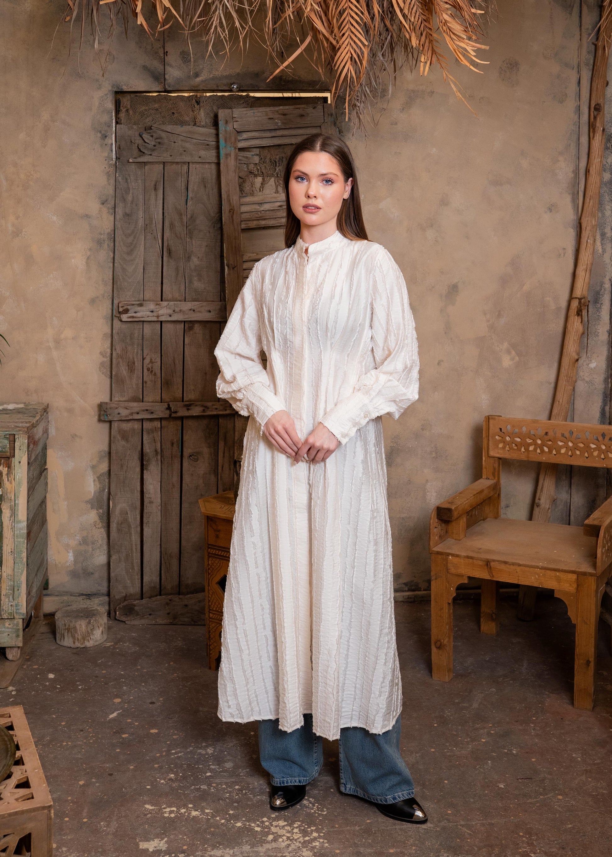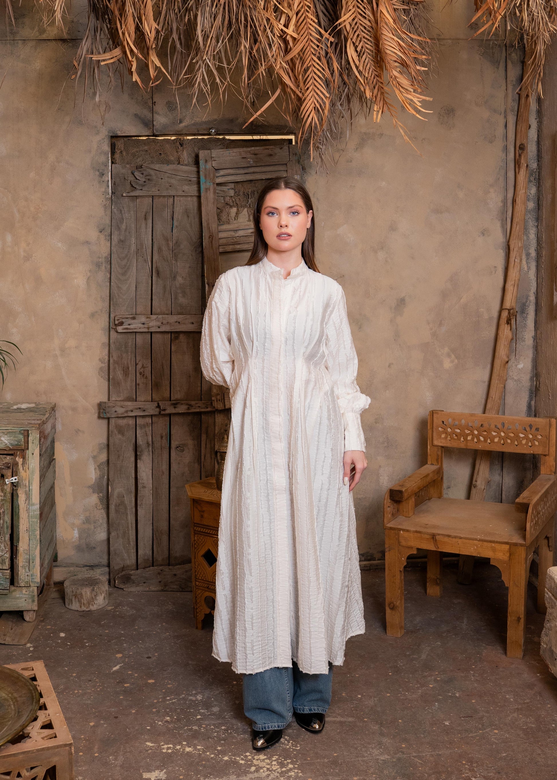 The Zezil Pleated Flow Dress is designed to move with you — soft, textured, and beautifully flowing for a timeless feminine look.